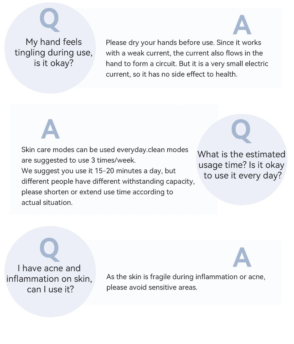 ⑦ Bonne aide pour les soins de la peau: élimine la rétention d'eau le matin-aide à bien démaquiller la peau avant de se coucher, 1 appareil peut répondre à vos besoins en matière de soins de la peau tout au long de la journée.
