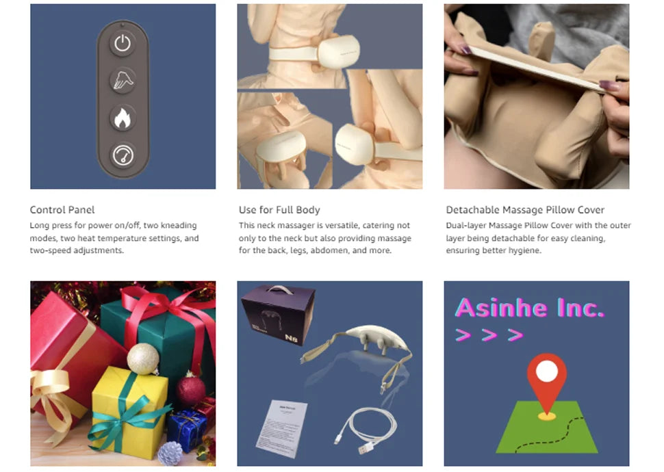 5. Soulagement de la douleur : lorsque des douleurs aux épaules et au cou surviennent, l'appareil de massage pétrissant offre un soulagement et réduit l'inconfort.