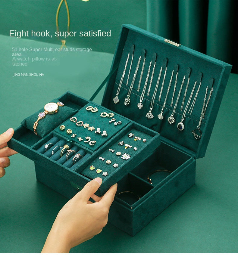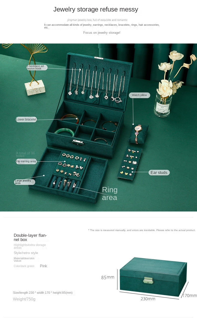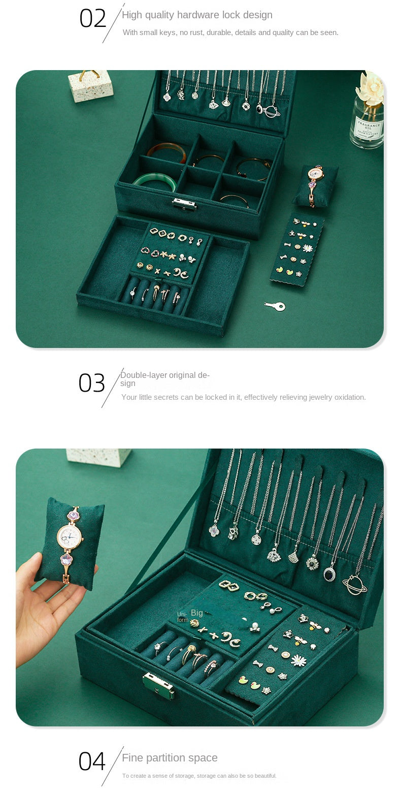 Nouveau style vintage velours boîte à bijoux double serrure boîte de rangement collier montre oreille boîte à bijoux grande capacité