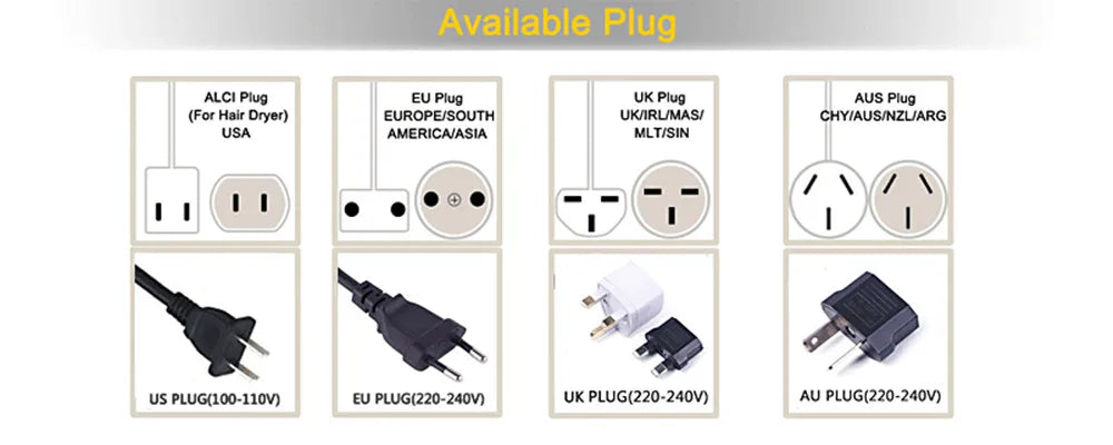 Tension : US-110 V, EU/UK/AU-220-240 V.