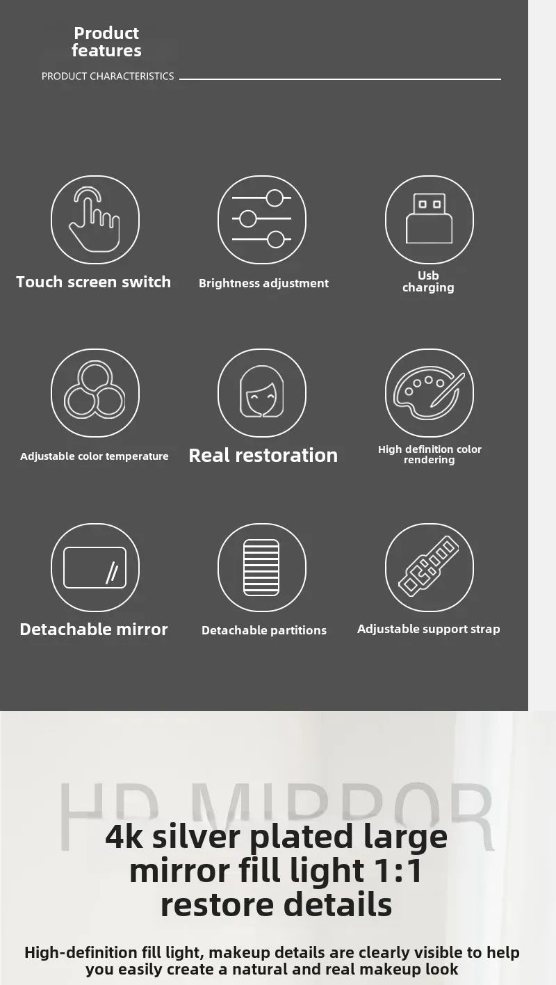 • Fonction de la lampe LED :Equipé d'une lampe LED, ce sac vous permet de vous maquiller facilement dans des conditions de faible luminosité.